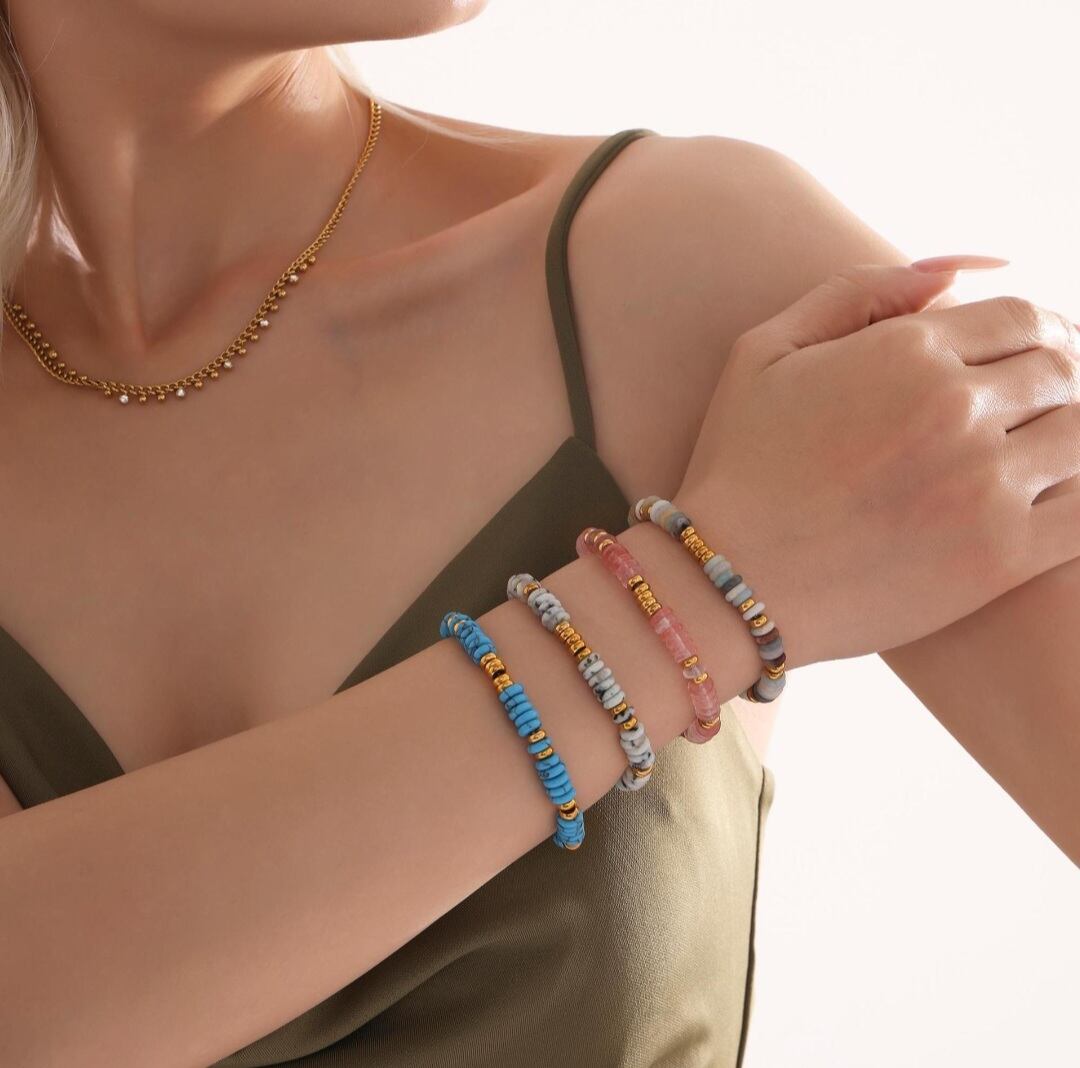 エレガントで心を癒す天然石と、耐久性に優れたサージカルステンレスを組み合わせたブレスレットです。
