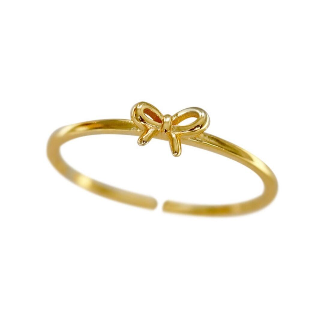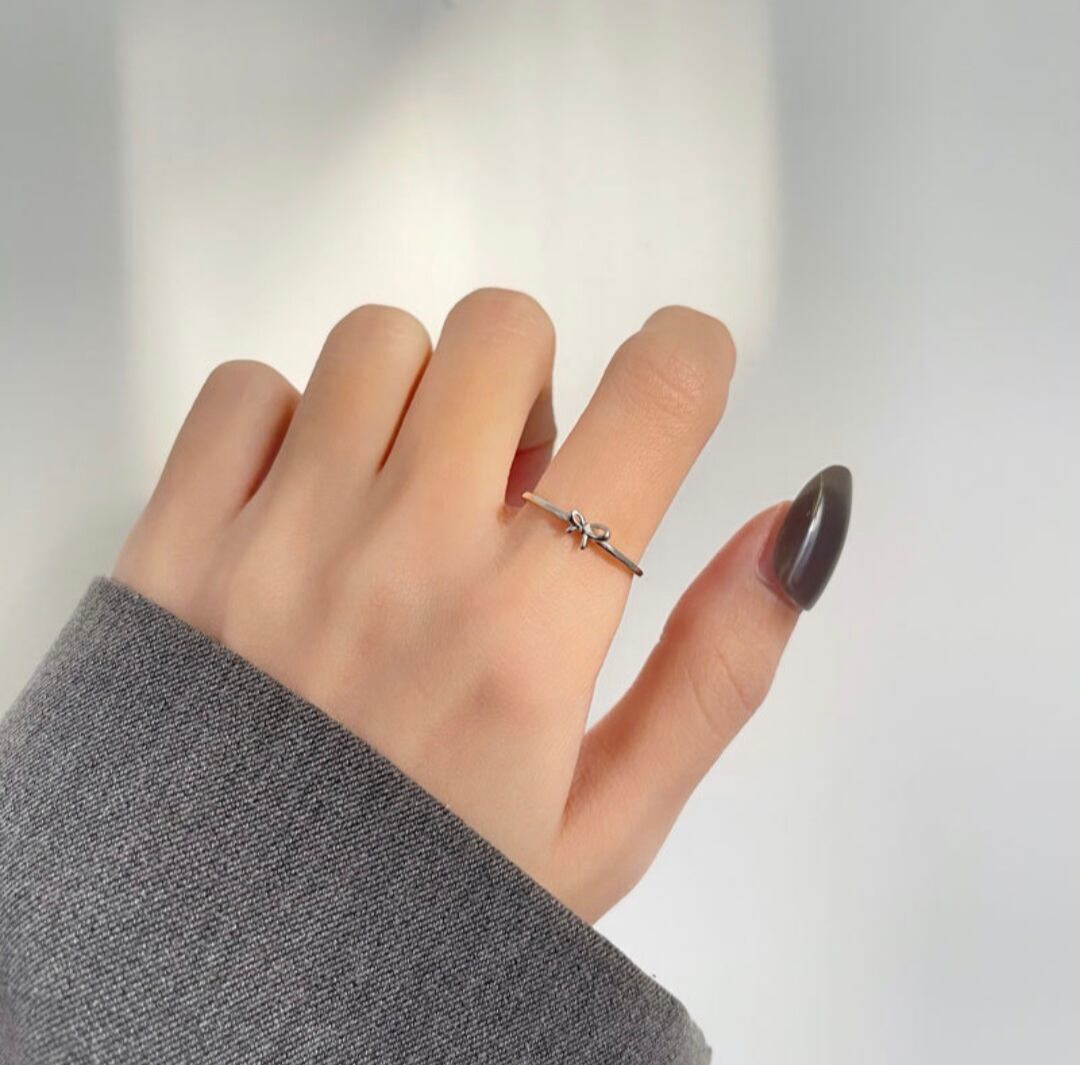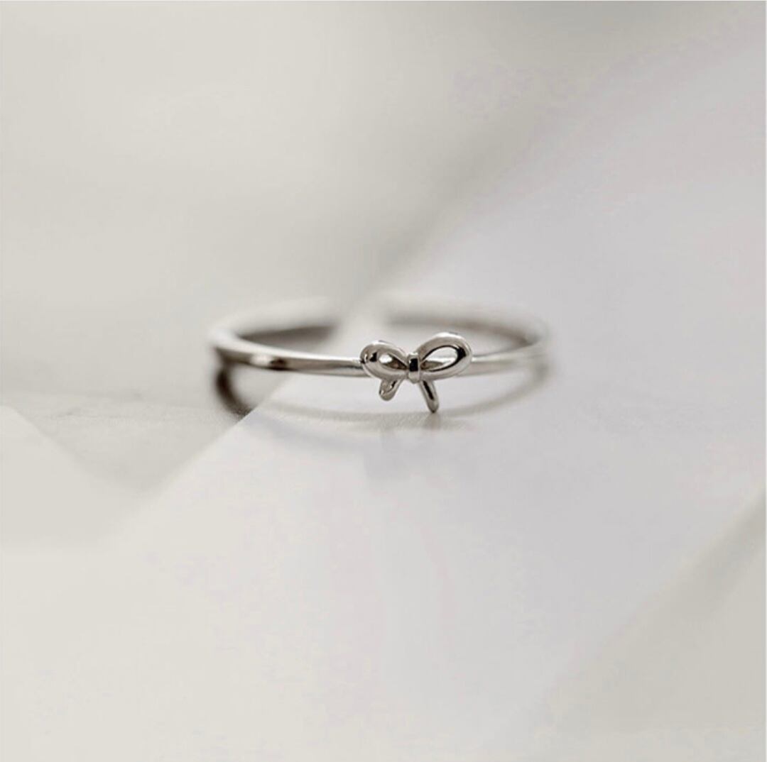 小さなリボンが付いた可愛らしいリングです。