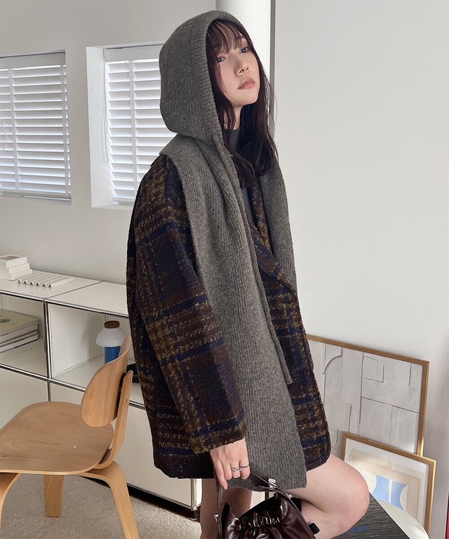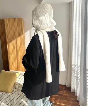 マフラー代わりのネックウォーマーとしてはもちろん、スウェットやニット、アウターと合わせフーディー風のアレンジでも楽しめます。