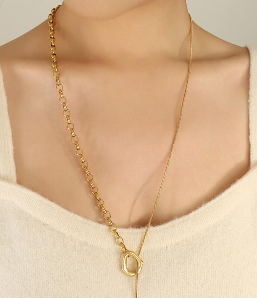 チェーンと華奢なラインが組み合わさった、上品なゴールドのネックレスが登場です。